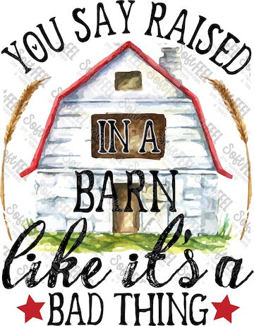 You Say Raised In A Barn Like Its A Bad Thing - Youth / Women's / Country Western - Direct To Film Transfer / DTF - Heat Press Clothing Transfer