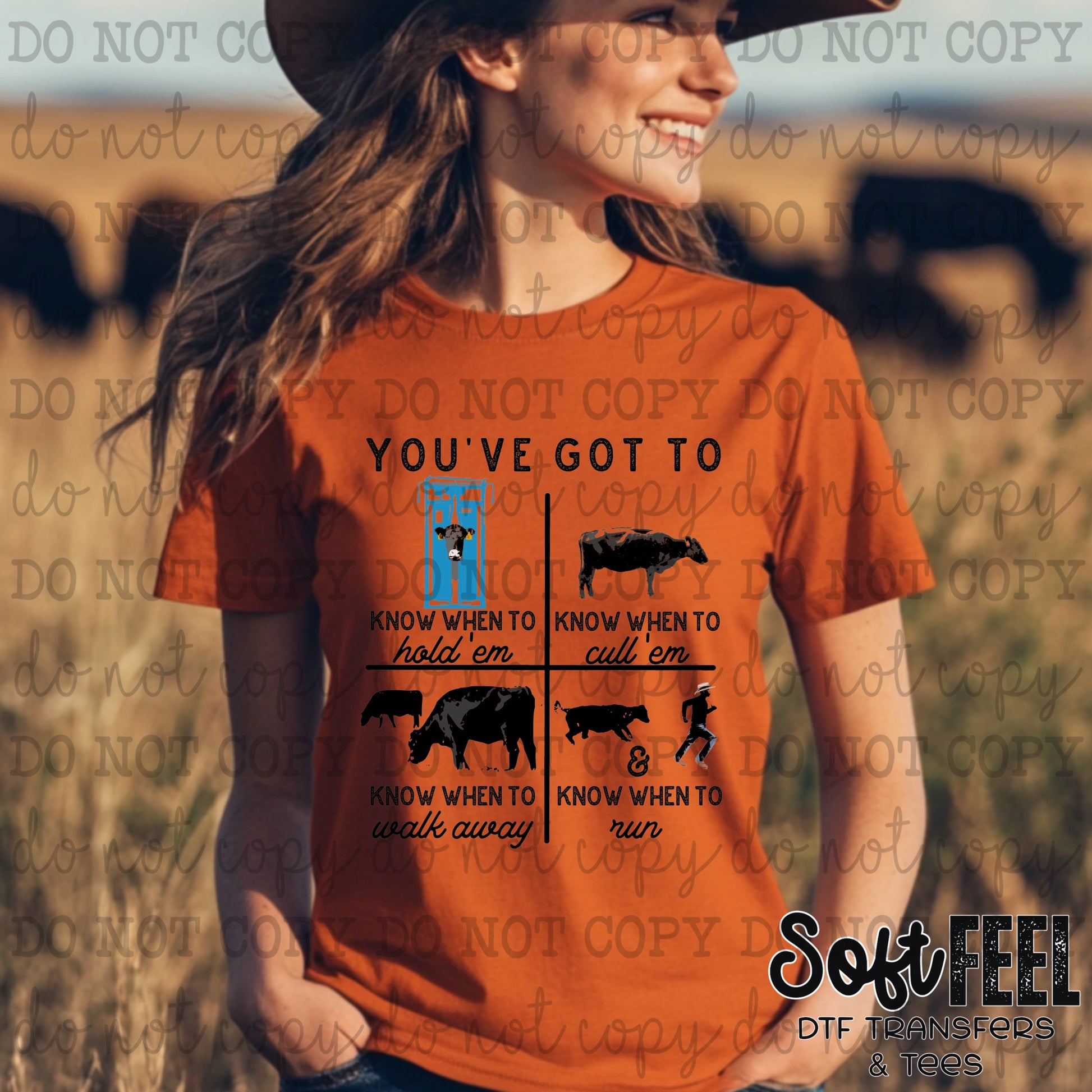 You've Got To Know When Cattle Humor - youth country western - Direct To Film Transfer / DTF - Heat Press Clothing Transfer