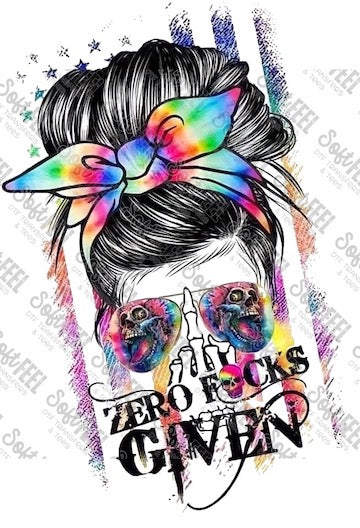 Zero F*cks Given Messy Bun - Snarky Humor / Patriotic / Women's - Direct To Film Transfer / DTF - Heat Press Clothing Transfer